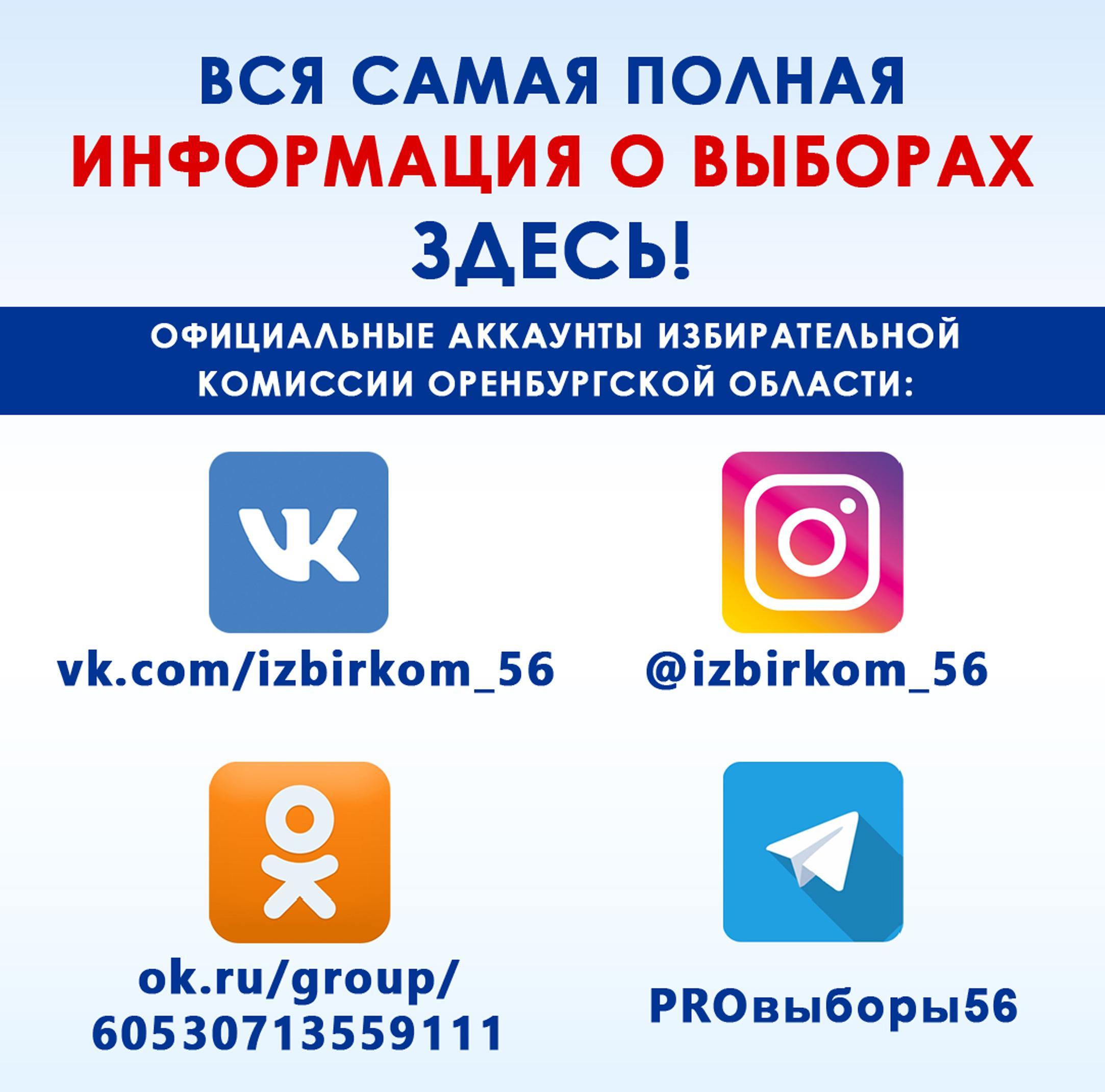 2. «ВКонтакте» - https://vk.com/izbirkom 56 (ИЗБИРКОМ Оренбургской области)